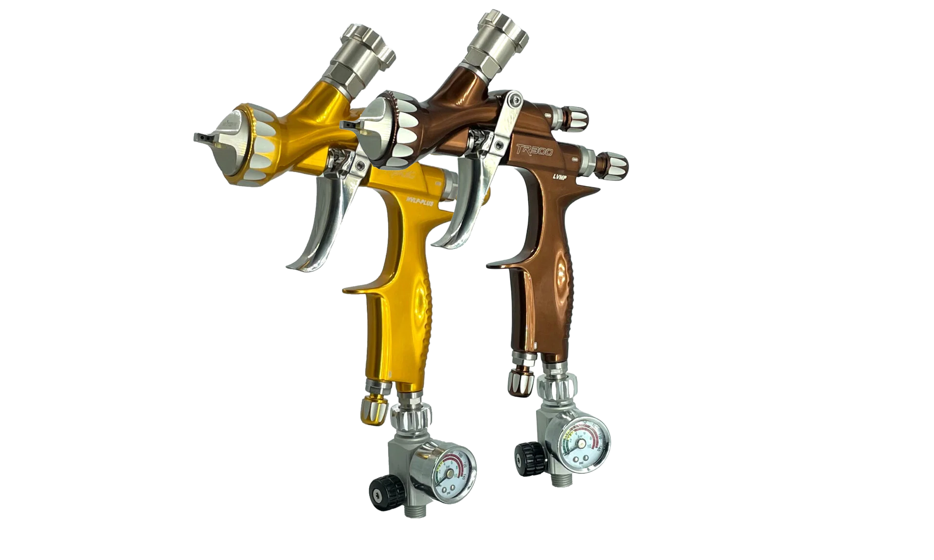 Pistole professionali PREMIUM specificatamente progettate per la verniciatura auto, adatte sia per l’applicazione di vernici a base solvente e all’acqua, e vernici trasparenti.